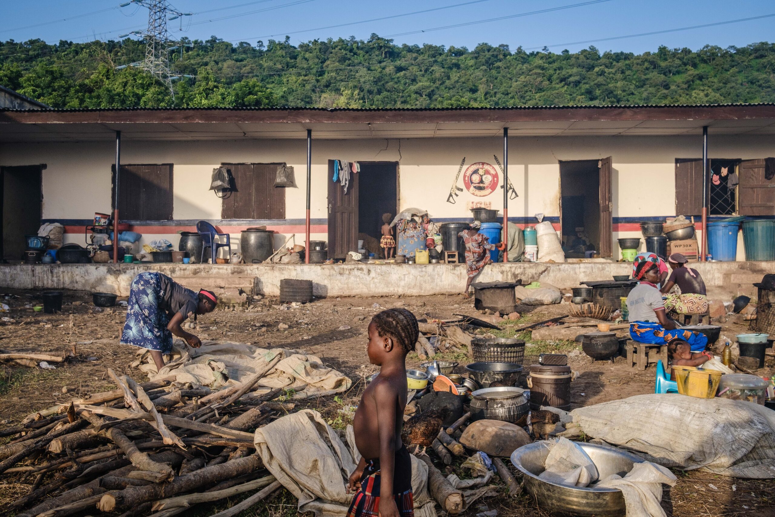 “We packed from our homes with empty hands, we don’t know when we’ll leave here. Portrait of Adamu Salihu; a farmer and a civil servant with his family at the school IDP camp. October 3, 2022. Lokoja Nigeria.