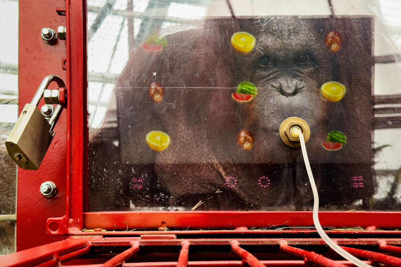 At a Dutch zoo, an orangutan’s gaze is tracked via touchscreen as part of primate cognition research. Sipping juice through a tube, he navigates an interface designed to study us both—revealing emotional cues we share, and limits we impose.