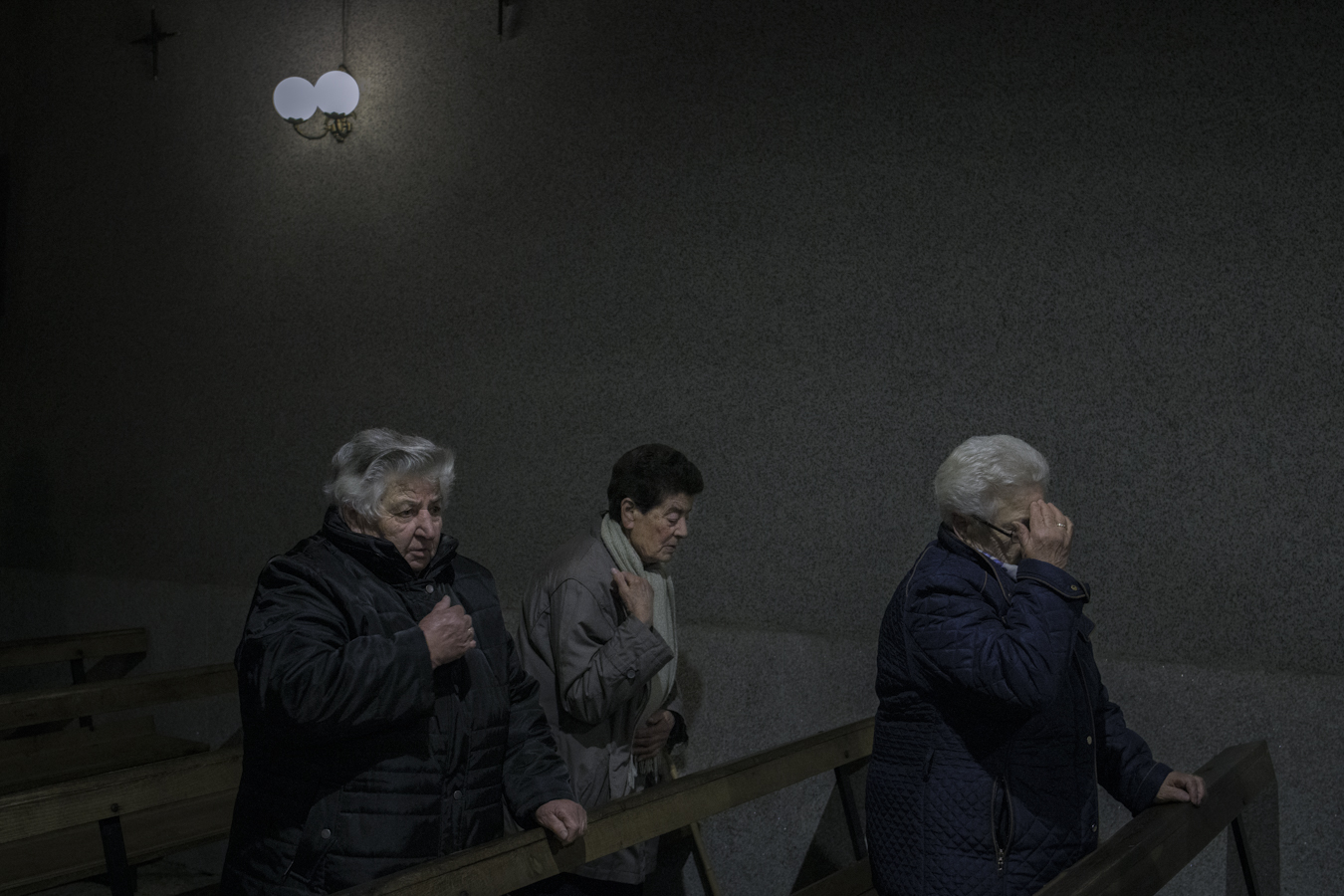 Several parishioners pray during the celebration of a mass in the church of San Bartolomeu de Baldriz, Cualedro (Ourense). The crisis of faith causes difficulties in relieving the older parish priests, who are forced to travel through the parishes until very old age. When rural priests retire or die, some churches close and are left unattended. This situation causes the faithful to lose the temple to go to and have to travel many kilometers if they want to attend a church.