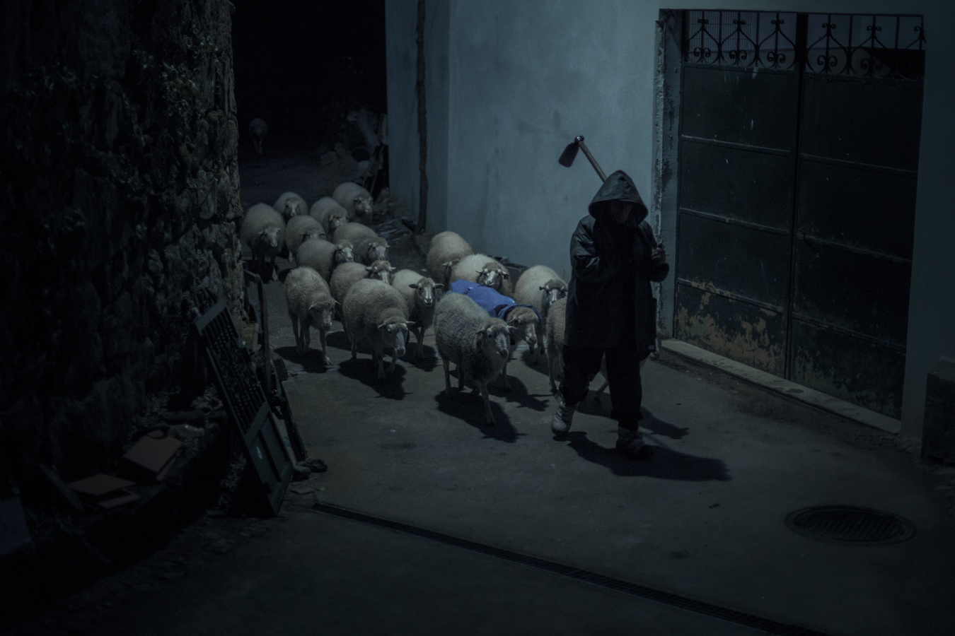 José Pérez in the village of Puxedo, Lobios (Ourense), walking down a dark street with their sheep. “The farm doesn’t give anything, I have it because I’ve had it all my life”. The progressive loss of importance experienced by the primary sector has much to do with the culture of smallholdings and a complicated orography to develop the current model of intensive production, which feeds the insatiable market of macro-production and overproduction.