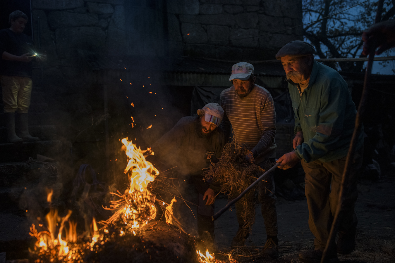 José Gonzalo, 67, and Inés Grova, 57, accompanied by his two sons, burns the pig’s skin using brushwood during the traditional pig slaughter in the village of A Estrema, As Neves, Pontevedra, in the northwest of Spain. The pig slaughter is an ancestral practice of great importance in rural Galician communities, not only as a primary source of food for families throughout the year but also as a social event that strengthens community ties and preserves traditions passed down from generation to generation.
